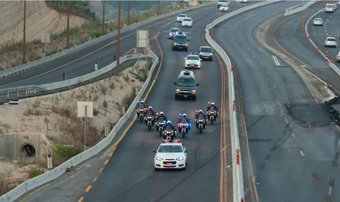 Похоронный кортеж покойного президента в пути (צילום: דוברות המשטרה)