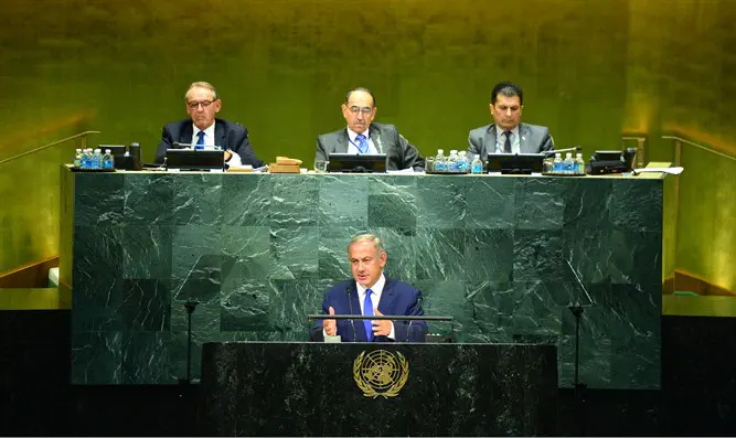 «То, что я собираюсь сказать, повергнет вас в шок», - многообещающе начал Нетаньяху своё выступление. - «Мы видим, что ООН ведет возмутительно несбалансированную политику в отношении Израиля: только в прошлом году было принято двадцать резолюций против Израиля – единственной демократической страны на Ближнем Востоке, в то время, как против любой другой страны мира не было принято больше трех резолюций».