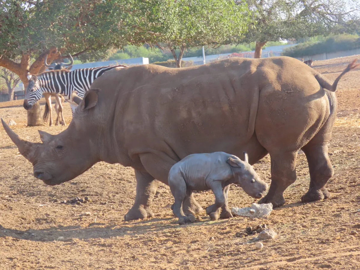 Большое волнение в сафари в Рамат-Гане: широкогубый носорог Рианна родила детёныша-самца.