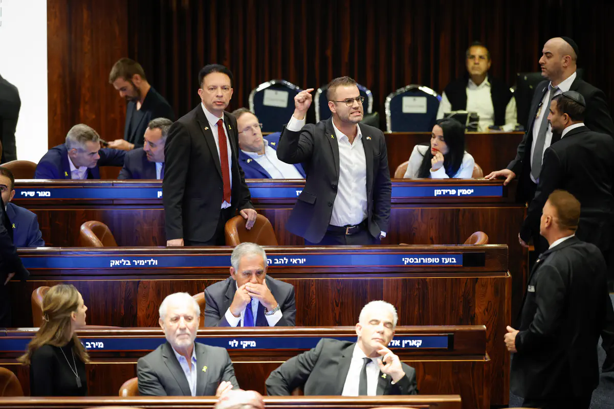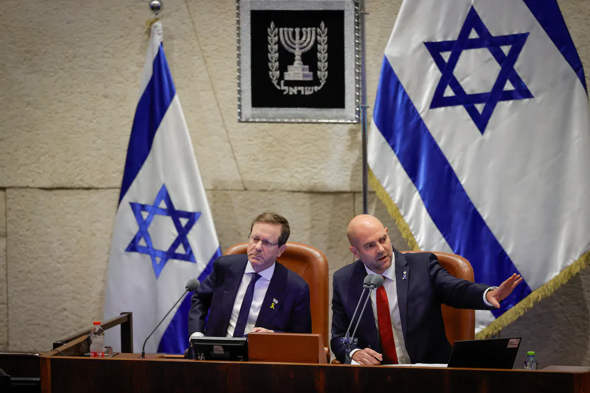 Спикер Кнессета Амир Охана открыл дебаты, зачитав имена присутствующих и назвав Амита «судьёй Верховного суда». Члены оппозиции вмешались и выкрикнули: «Председатель Верховного суда».