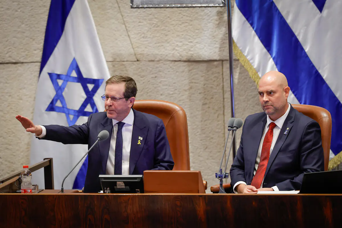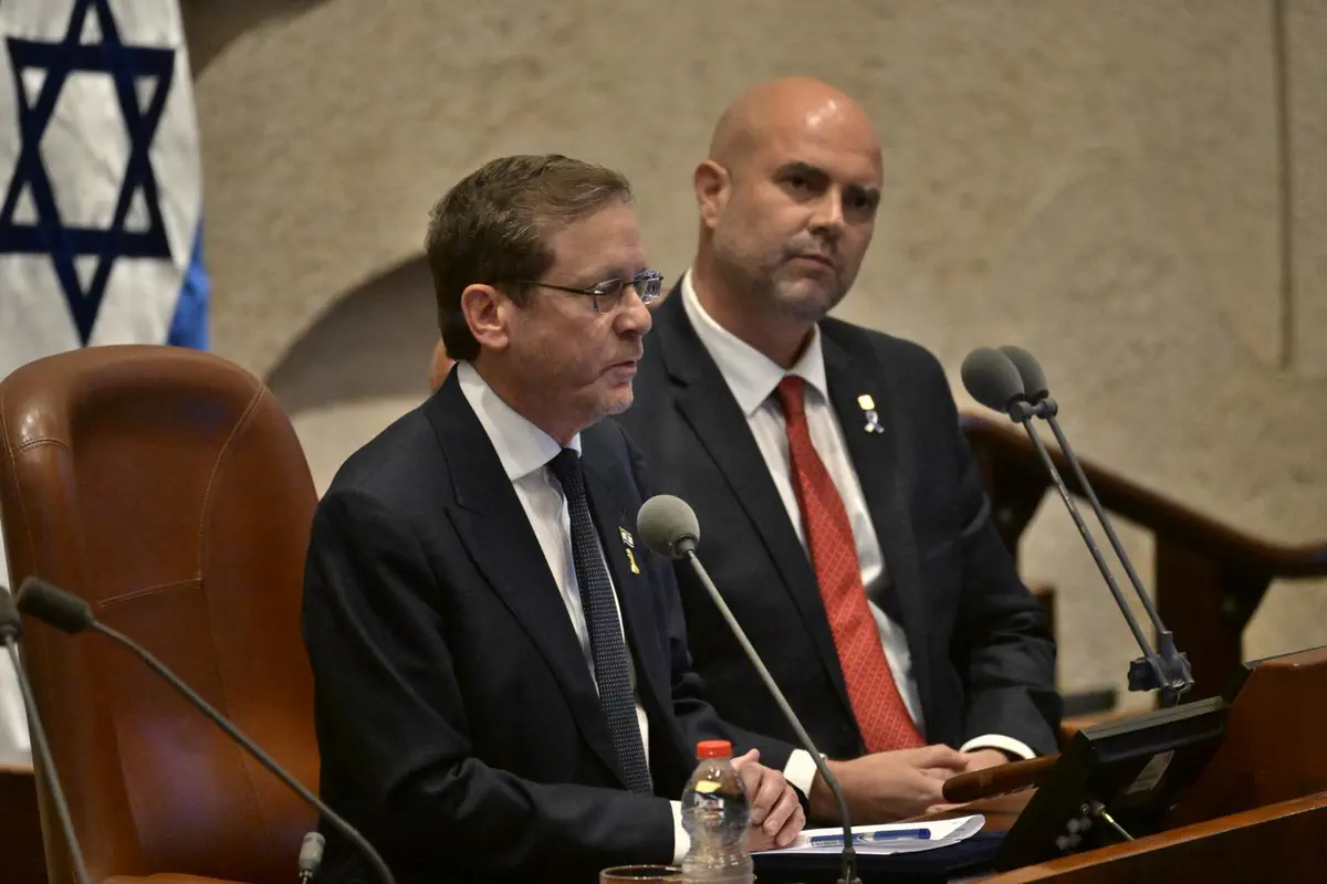 Президент Ицхак Герцог отказался от своей речи в связи с возникшими волнениями и в начале речи назвал Ицхака Амита «Председателем Верховного суда», заслужив аплодисменты. Он сказал, что не будет зачитывать написанную им речь: «У меня была подготовленная, длинная и программная речь, но это очень важный момент в нашей жизни, и моё сердце обливается кровью. Есть разница между принципиальным, законным спором и невежливостью, оскорблением человеческого достоинства, оскорблением других органов власти и оскорблением израильских судей».