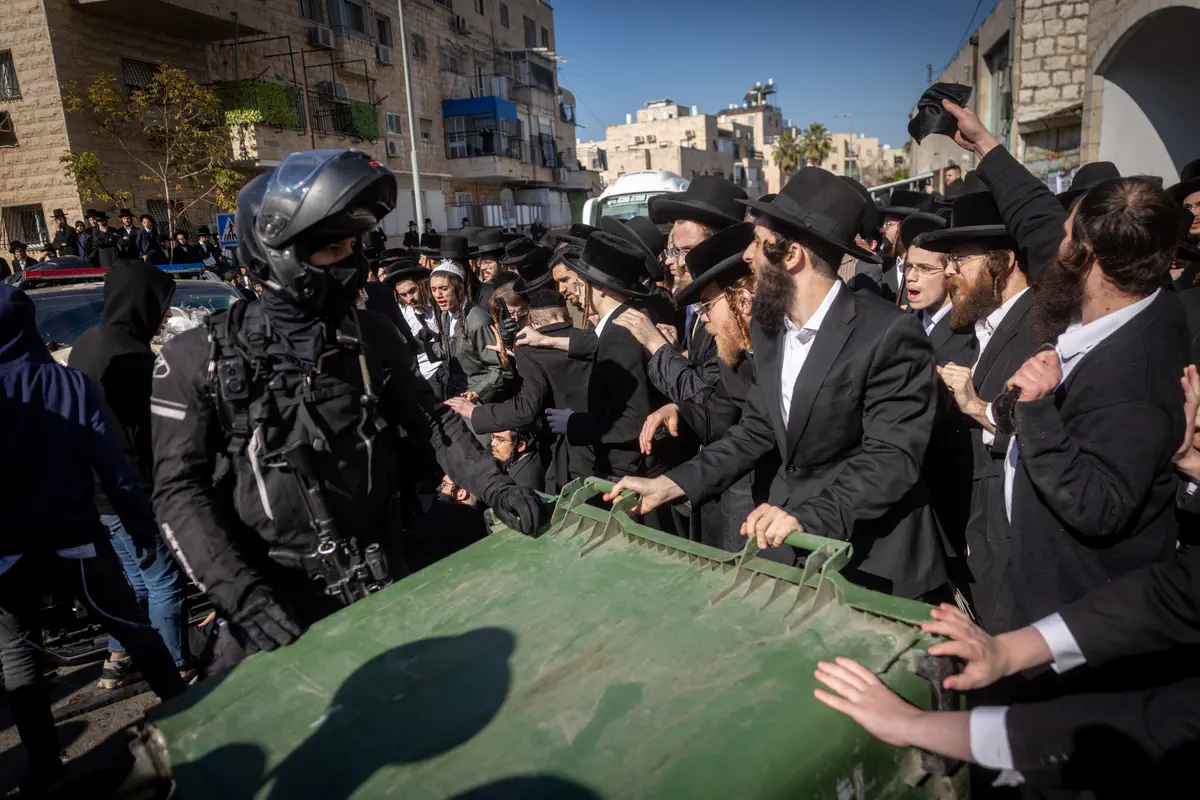 Затем подтянувшаяся толпа ультраортодоксов окружила полицейских. Участники беспорядков перевернули полицейский автомобиль и забросали его камнями и мусором. Полиция применила меры по разгону беспорядков, включая слезоточивый газ, чтобы рассеять толпу и вытеснить с места событий. Четверо участников беспорядков были арестованы.