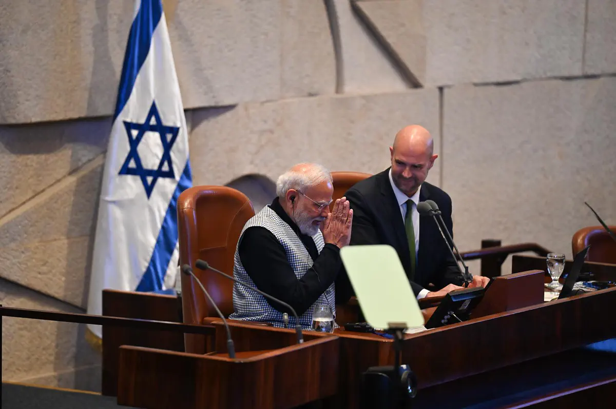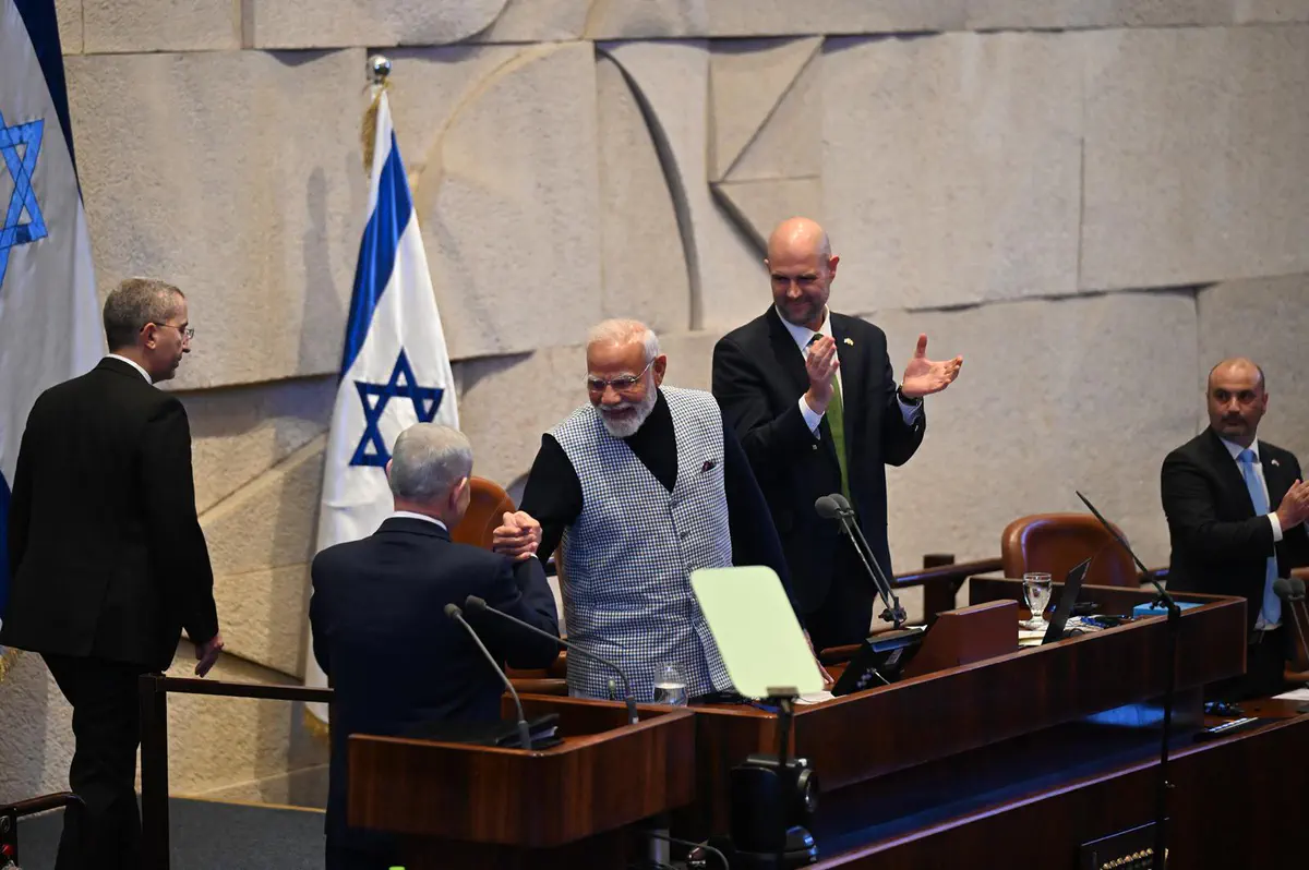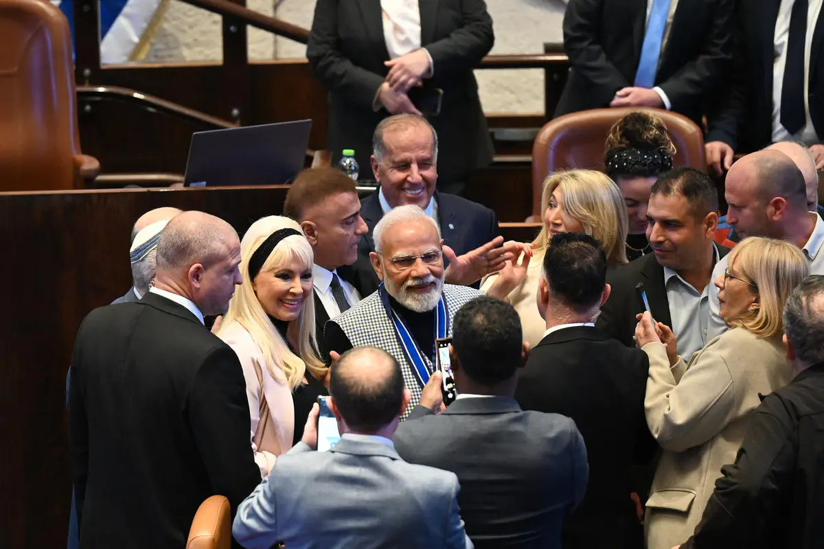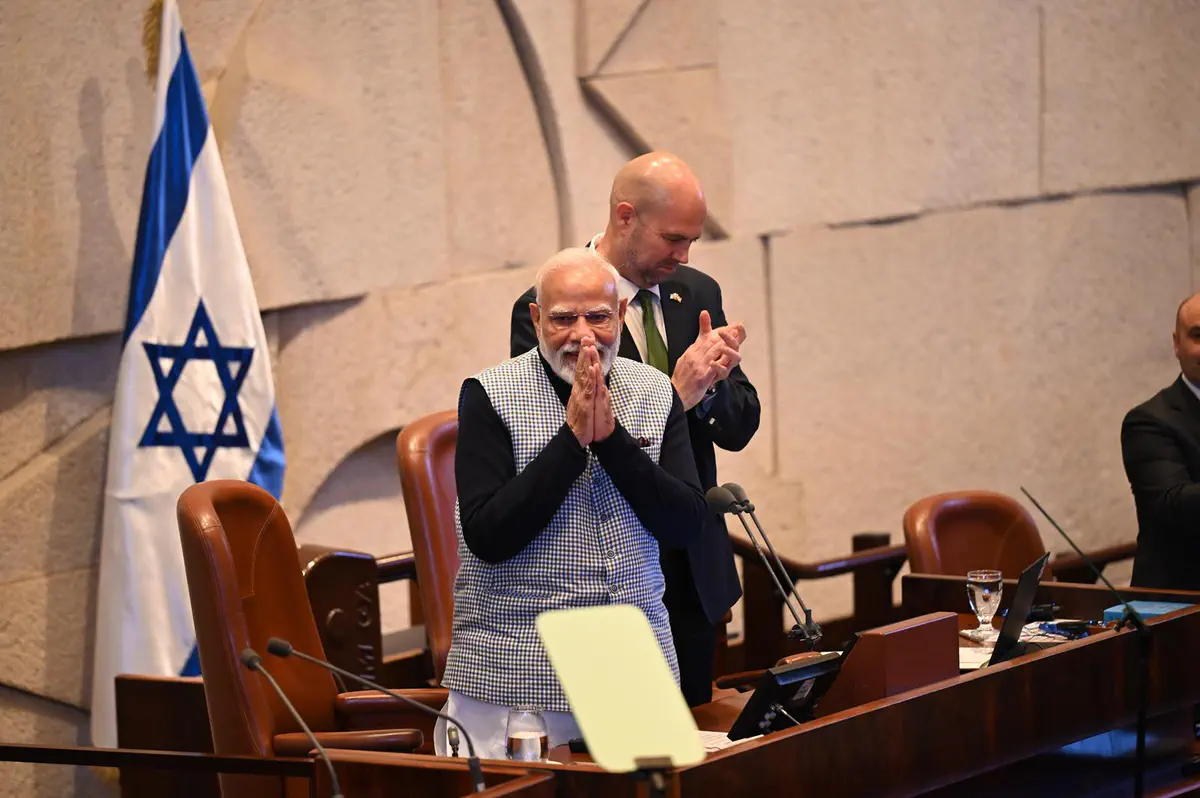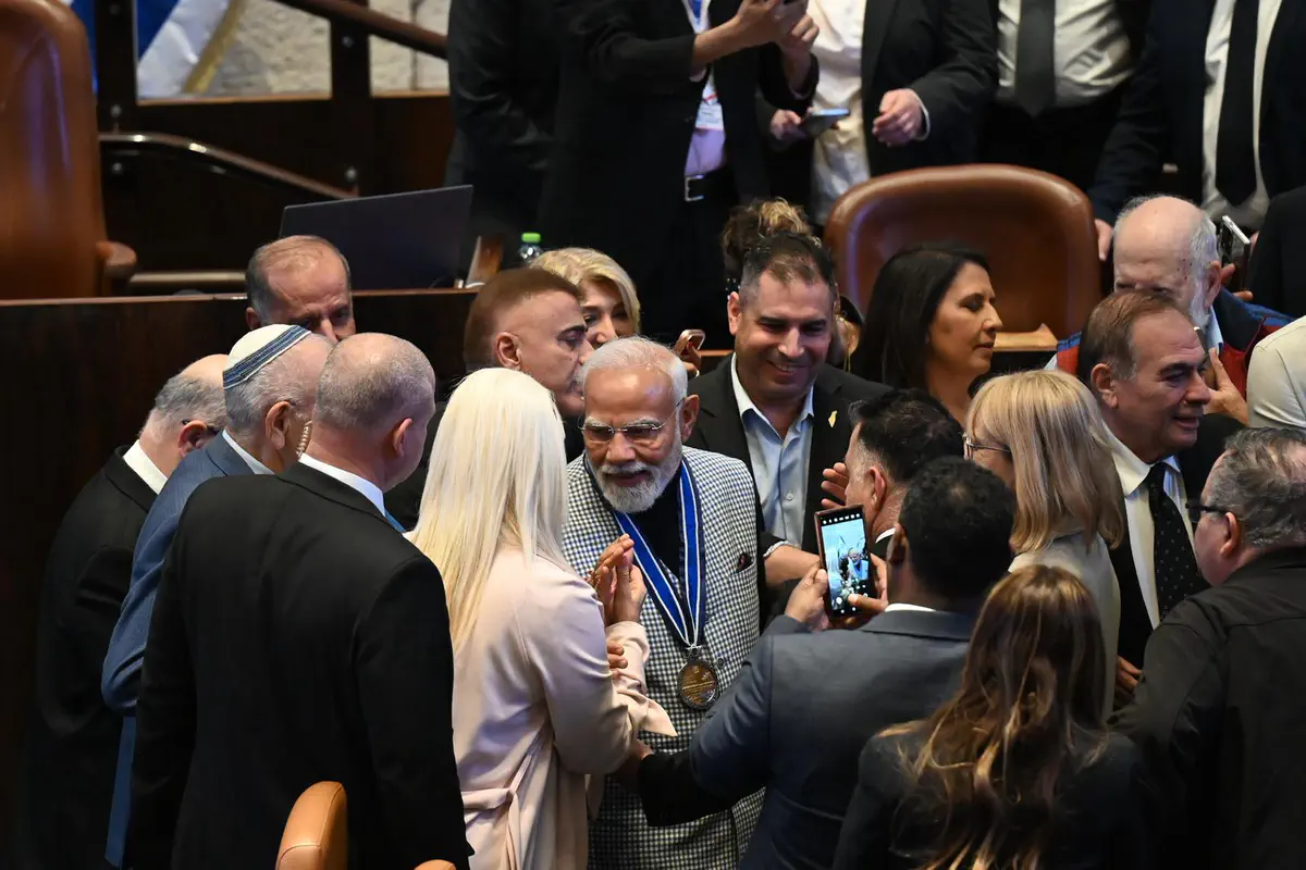 Премьер-министр Индии Нарендра Моди прибыл в Кнессет, где его встретили премьер-министр Израиля Биньямин Нетаньяху и спикер Кнессета Амир Охана. Моди оставил запись в гостевой книге и направился на пленарное заседание для участия в торжественных дебатах, проводимых в его честь.
