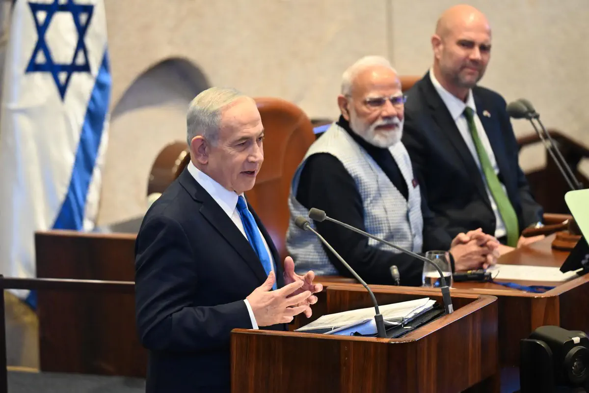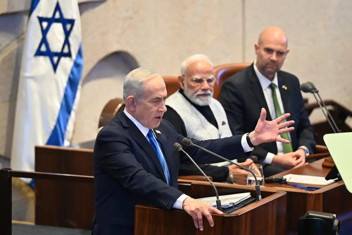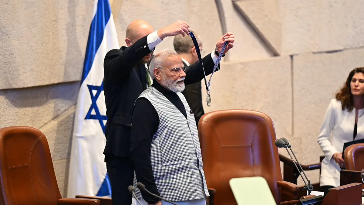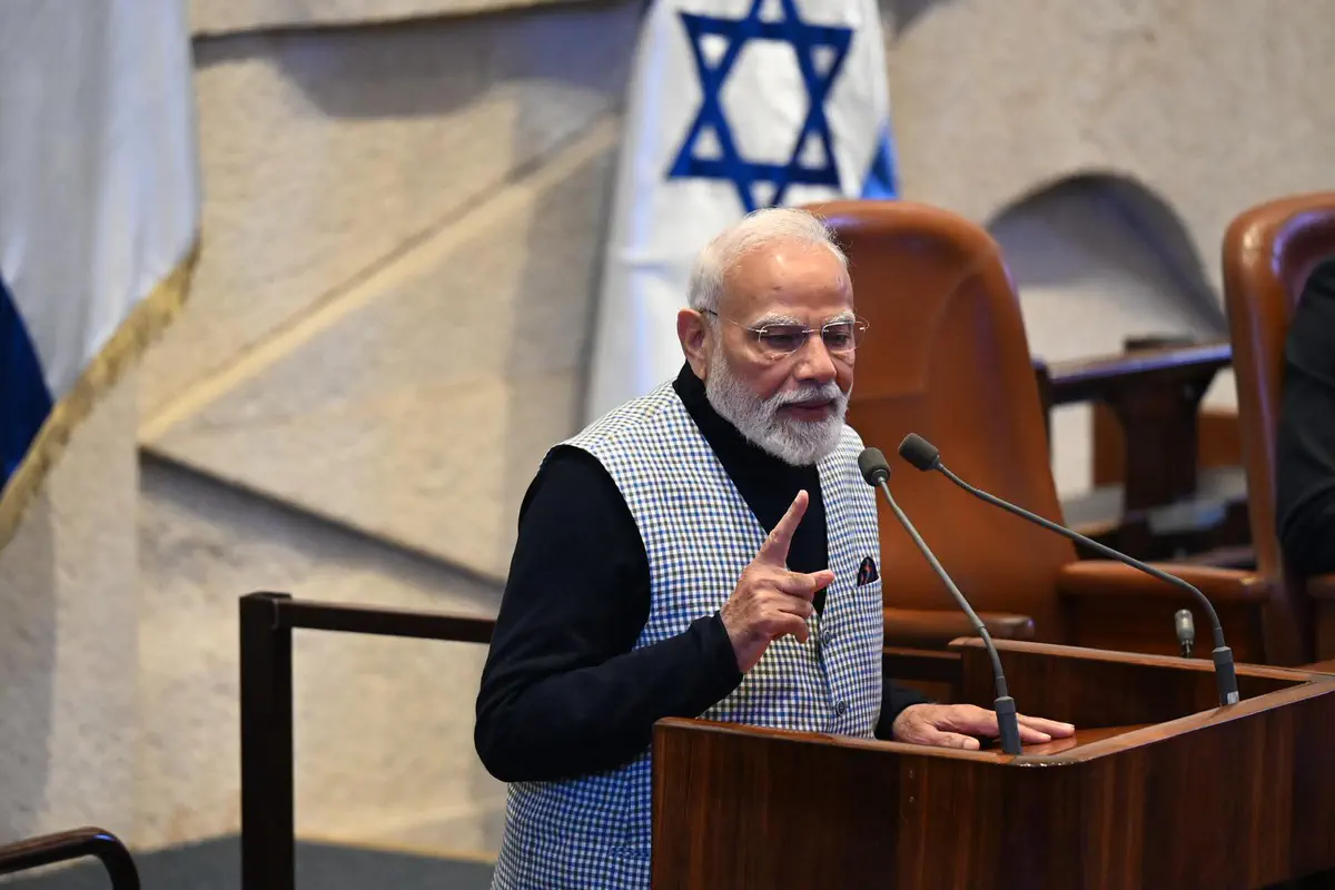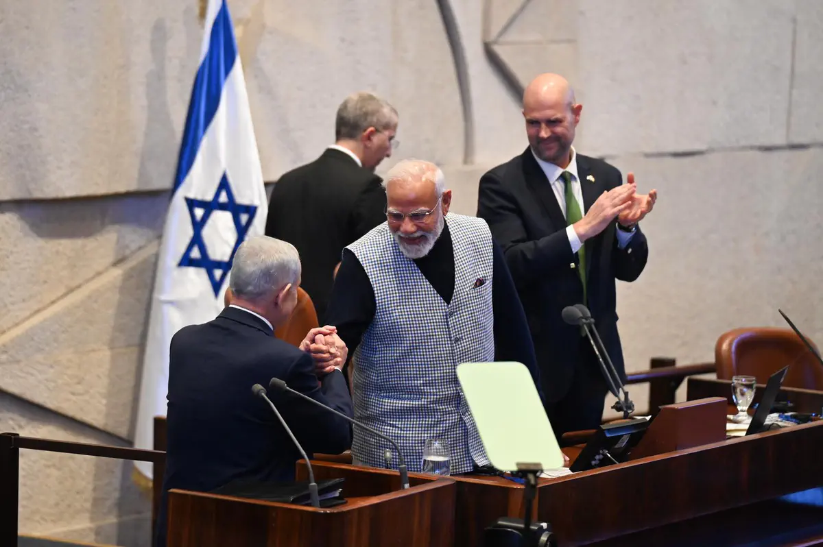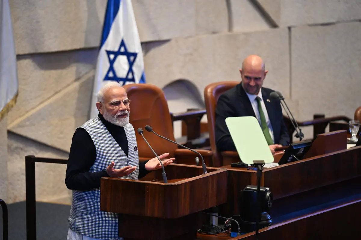 Премьер-министр Индии Нарендра Моди прибыл в Кнессет, где его встретили премьер-министр Израиля Биньямин Нетаньяху и спикер Кнессета Амир Охана. Моди оставил запись в гостевой книге и направился на пленарное заседание для участия в торжественных дебатах, проводимых в его честь.