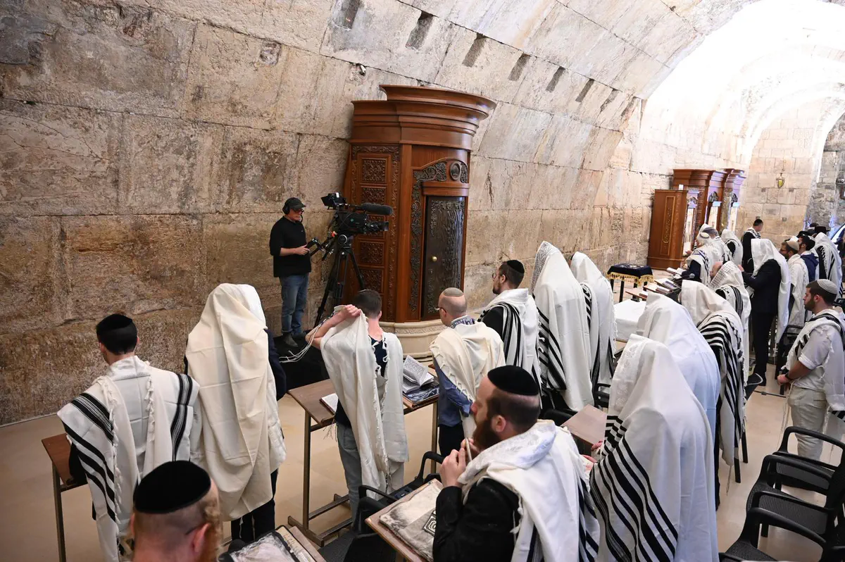 «Стоять у Западной Стены и молиться праздничной молитвой в ограниченном формате - когда мы привыкли видеть площадь Западной Стены заполненной от края до края - это, безусловно, печально. С другой стороны, мы находимся в исторические моменты, когда мы видим приближение избавления. Мы на пути к большой победе, и я обещаю, что по завершении боевых действий мы проведем здесь большую благодарственную молитву с участием многих людей», - сказал Леон нашему корреспонденту, ведшему прямую трансляцию с места событий.